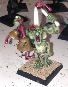 With that, I leave this inaugural post with a picture of a complete (except his base) Plaguebearer. Expect tips and step by steps to be forthcoming on the different effects I did on him.