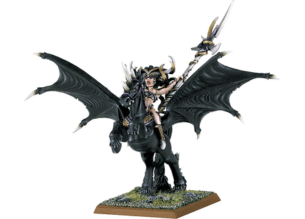 Supreme Sorceress (Here is the first of the lucky armies that can take inexpensive flying mounts. Dark Pegasus with a Talisman of Protection and Dragon Egg for a breath weapon and Toughness boost make this Wizard a BITCH to deal with. Take another level 1 wizard with the same lore to close that Loremaster gag with a Sac-Dagger purely for casting Power of Darkness and drop her in a unit of fodder. Then just sit back and watch your opponent cringe.)